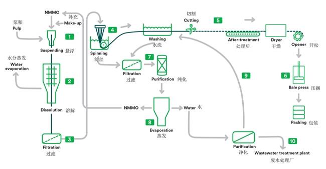 也就是說(shuō),天絲?是纖維品牌,而萊賽爾纖維是纖維產(chǎn)品。目前,通過(guò)嚴(yán)格把控原料取材,優(yōu)化工藝、生產(chǎn)流程,天絲?的萊賽爾纖維在可降解、零碳以及循環(huán)利用方面,均“百尺竿頭更進(jìn)一步”。