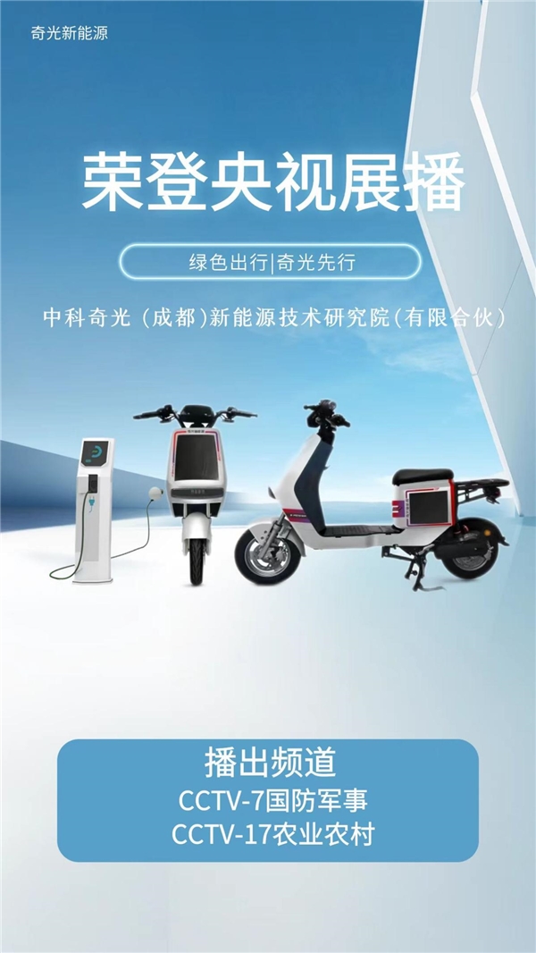 近日,中科奇光(成都)新能源技術(shù)研究院旗下品牌奇光新能源光伏發(fā)電電動(dòng)車榮登中央廣播電視總臺(tái)CCTV-7、CCTV-17頻道進(jìn)行廣告展播,向大眾介紹講述產(chǎn)品故事,以提升國(guó)產(chǎn)品牌在公眾心中的影響力,打造優(yōu)選國(guó)產(chǎn)品質(zhì),實(shí)現(xiàn)品牌價(jià)值和促進(jìn)自身發(fā)展。