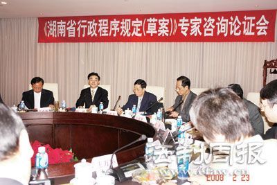 此后,周強4次召開會議聽取湖南省法制辦的起草工作匯報,并與專家反復商榷。應周強省長之邀,國家行政學院法學部主任應松年教授牽頭成立了《湖南省行政程序規(guī)定》起草專家組。湖南省政府法制辦成立了行政程序立法工作小組。針對當前行政行為出現(xiàn)的若干問題,從行政決策、行政效率以及公眾參與等方面,兩個小組共同研究起草了《湖南省行政程序規(guī)定(草案)》(以下簡稱《規(guī)定》)。