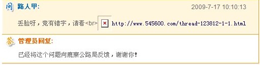 這些網(wǎng)友的困惑中,有關(guān)于公路法律法規(guī)的疑問,管理員以相關(guān)條例或者是相關(guān)網(wǎng)站作答;有關(guān)于其他單位的疑問,管理員提供對口單位的地址或者電話;有關(guān)于道路施工進(jìn)展的問題,管理員盡量提供準(zhǔn)確的竣工時間和進(jìn)展;有對公路管理人員的投訴,管理員也問清時間地點事件及時反映,甚至有網(wǎng)友的抱怨發(fā)牢騷,管理員也耐心作答,委婉勸說。