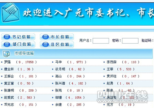 廣元市長(zhǎng)信箱欄目位于廣元市人民政府的網(wǎng)站下半部分的中間位置,是一個(gè)獨(dú)立板塊,分為書記信箱、市長(zhǎng)信箱、縣區(qū)信箱、部門信箱、建言獻(xiàn)策5個(gè)部分。目前,廣元市已經(jīng)開通了市、縣、鄉(xiāng)鎮(zhèn)三級(jí)信箱。各級(jí)主要領(lǐng)導(dǎo)、政府部門、甚至包括三大通訊運(yùn)營(yíng)商在內(nèi)的與群眾生活聯(lián)系緊密的國(guó)有企業(yè)都有單獨(dú)入口,和書記市長(zhǎng)信箱同系統(tǒng)管理。