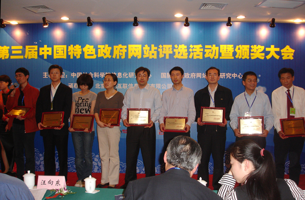 此次活動涵蓋73個部委級政府網(wǎng)站、全國省級、市級、縣級的562個政府網(wǎng)站。在部委級網(wǎng)站中,商務(wù)部、水利部、衛(wèi)生部、民政部等9個部委的網(wǎng)站獲單項特色網(wǎng)站獎。評審專家認為,水利部網(wǎng)站的“水利百科”欄目在傳播水利文化,推動水利知識普及方面別具特色,提供了豐富的信息資源,是公眾獲得水利知識的第一選擇渠道,是具有水利特色的品牌欄目。在去年的“第二屆中國特色政府網(wǎng)站評選活動”中,水利部網(wǎng)站榮獲了“政務(wù)信息公開特色獎”。