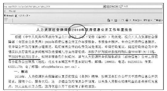 網(wǎng)友在網(wǎng)上報(bào)料,人社部官網(wǎng)2010年度“信息公開年報(bào)”期限竟然是“自2010年1月1日起至2009年12月31日止”。