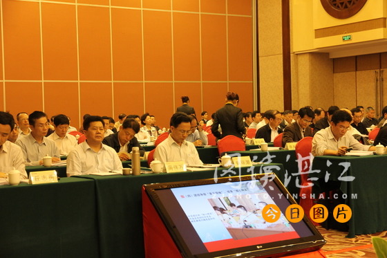 與會(huì)領(lǐng)導(dǎo)在觀(guān)看湛江經(jīng)驗(yàn)介紹ppt
