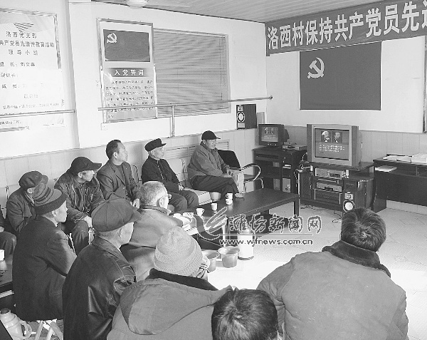 壽光市洛西村黨員集體收看黨員干部現(xiàn)代遠程教育節(jié)目。
