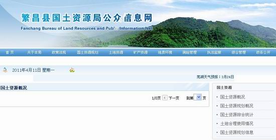 據(jù)王先生介紹,自己是浙江的一名企業(yè)家,在朋友的介紹下,準(zhǔn)備今年在繁昌縣進(jìn)行項(xiàng)目投資。為了解該縣土地有關(guān)使用詳情,他登陸了繁昌縣國(guó)土局公共信息網(wǎng)站(http://www.fcgtj.gov.cn/Home/index.aspx)查看。令他相當(dāng)意外的是,該網(wǎng)站許多內(nèi)容都是空白。