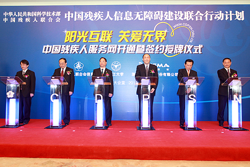 圖為與會(huì)領(lǐng)導(dǎo)共同啟動(dòng)中國殘疾人服務(wù)網(wǎng)開通