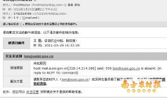 佛岡“縣長(zhǎng)信箱”對(duì)種糧補(bǔ)貼咨詢很快作出了回復(fù),且讓群眾給答復(fù)打分。(如上圖)而發(fā)給遂溪縣長(zhǎng)的郵件卻遭退回。(見下圖)