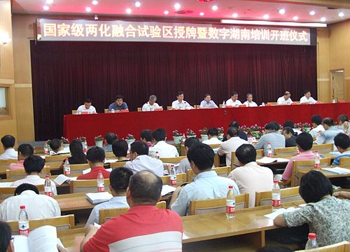 2011年7月22日上午,湖南長株潭國家級兩化融合試驗(yàn)區(qū)授牌暨數(shù)字湖南領(lǐng)導(dǎo)干部培訓(xùn)班開班儀式在湖南長沙舉行。工業(yè)和信息化部副部長楊學(xué)山出席會議并做信息化專題報(bào)告。湖南省委常委、湖南長株潭“兩型社會”綜合配套改革試驗(yàn)區(qū)工委書記陳肈雄出席會議并講話。