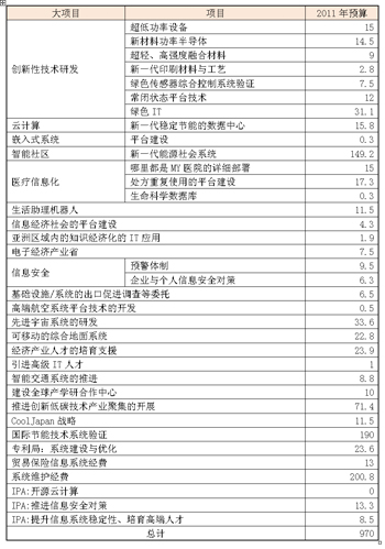 表2 經(jīng)濟(jì)產(chǎn)業(yè)省2011年度ITC預(yù)算項(xiàng)目(單位:億日元)