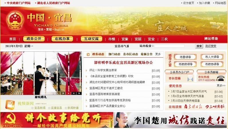 圖一 中國(guó)·宜昌門戶網(wǎng)站首頁(yè)(部分)
