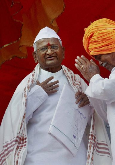 9月2日,印度絕食反腐活動(dòng)家哈扎雷在他的家鄉(xiāng)接受人們的敬意