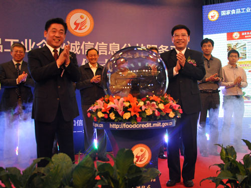 工信部部長(zhǎng)苗圩和國(guó)務(wù)院食安辦副主任劉佩智啟動(dòng)開通國(guó)家食品工業(yè)企業(yè)誠(chéng)信信息公共服務(wù)平臺(tái)