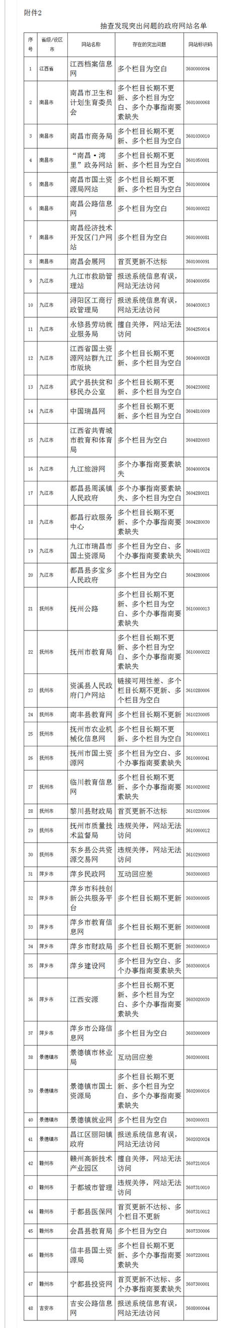 2.抽查發(fā)現(xiàn)突出問題的政府網(wǎng)站名單