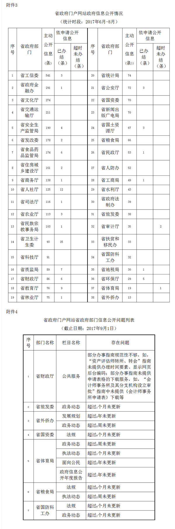 4.省政府門戶網(wǎng)站省政府部門信息公開問題列表