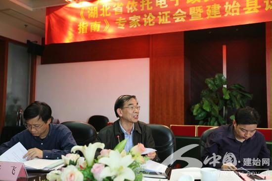 湖北省電子政務(wù)首席專家、武漢大學(xué)教授唐勝群(中)高度肯定建始縣的試點(diǎn)工作