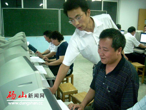 5月27日晚7:00,碭山中學一名教師在為縣委書記張祥根進行計算機網(wǎng)絡知識輔導。從5月27日起,由縣委宣傳部組織舉辦的縣四大班子領(lǐng)導,縣直各單位主要負責人,各鎮(zhèn)及開發(fā)區(qū)負責人電子政務培訓班,擬利用每晚兩個小時的時間,通過一個月的學習培訓,使碭山縣電子政務得到有效推動。全縣100多名正科級以上干部將通過對計算機辦公自動化、網(wǎng)絡基礎知識和應用、計算機安全與管理及其實際運用操作,強化運用信息技術(shù)與資源的能力,提高推進電子政務工作的水平和實際應用能力。