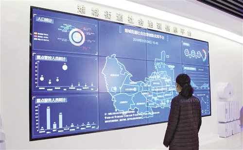 雉城街道社會治理創(chuàng)新實踐中心,大屏幕正在演示雉城街道社會治理綜合信息平臺。 林紫曉攝