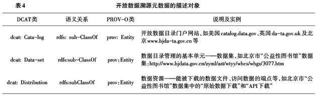下面結(jié)合PROV-O,分析DCAT所包含的溯源元數(shù)據(jù)及其語義。