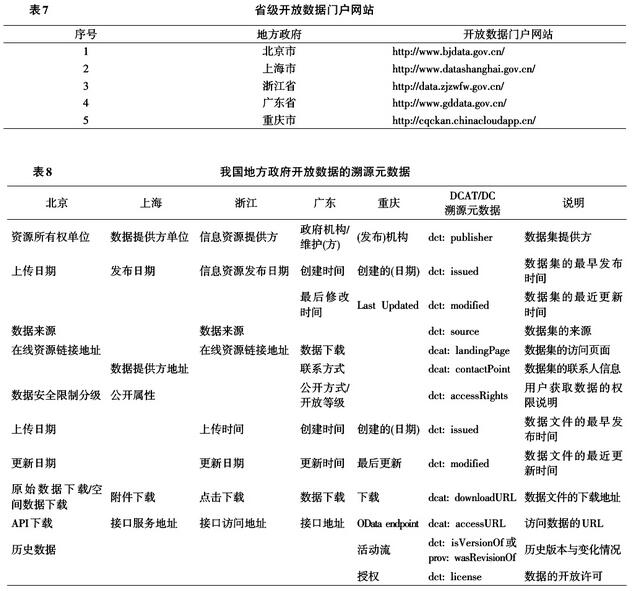 目前,我國已建有十幾個地方政府開放數(shù)據(jù)的門戶網(wǎng)站,均通過元數(shù)據(jù)對資源進行描述。但各地的元數(shù)據(jù)數(shù)量、類型都不盡相同,普遍缺乏規(guī)范的元數(shù)據(jù)標準體系,造成用戶難以了解數(shù)據(jù)的各項信息,包括溯源信息。