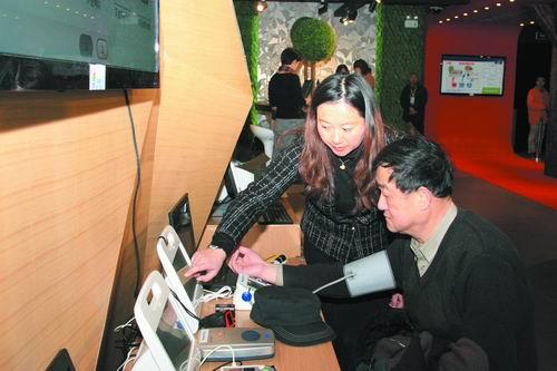 圖為市民在其中的家庭社區(qū)健康生活實(shí)驗(yàn)區(qū)監(jiān)測(cè)血壓、血糖和心電等。各項(xiàng)指標(biāo)可上傳至健康云端及社區(qū)醫(yī)生,適時(shí)給予健康指導(dǎo)及干預(yù)。
