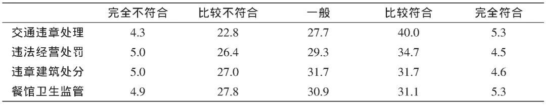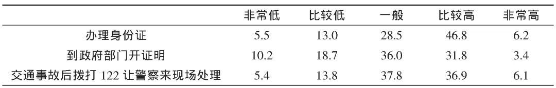 表2 政府部門依法辦事的市民評(píng)價(jià) (百分比, %)