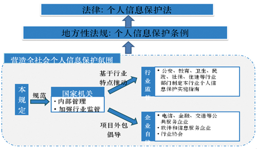 在實(shí)踐探索基礎(chǔ)上,達(dá)到以下目標(biāo):一是國家機(jī)關(guān)能夠管理好部門內(nèi)部掌握的個(gè)人信息,做到不違法;二是行業(yè)主管部門可基于文件要求和行業(yè)特點(diǎn),制定適合本行業(yè)的個(gè)人信息保護(hù)規(guī)定與實(shí)施指南,加強(qiáng)行業(yè)監(jiān)管;三是企業(yè)通過參與國家機(jī)關(guān)外包項(xiàng)目,逐步建立內(nèi)部個(gè)人信息保護(hù)制度,不斷增強(qiáng)個(gè)人信息保護(hù)意識(shí);四是隨著全社會(huì)個(gè)人信息保護(hù)氛圍的逐步形成,將制定個(gè)人信息保護(hù)地方性法規(guī);五是在個(gè)人信息保護(hù)地方性法規(guī)實(shí)施一段時(shí)間后,待條件成熟時(shí),可適時(shí)出臺(tái)個(gè)人信息保護(hù)法。
