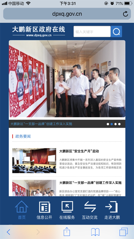 大鵬新區(qū)為構(gòu)建“網(wǎng)上網(wǎng)下同心圓”,不斷推進(jìn)“互聯(lián)網(wǎng)+群眾路線”的實(shí)踐,最大限度凝聚社會(huì)共識(shí),堅(jiān)持以大數(shù)據(jù)、智能化為引領(lǐng),緊緊圍繞新區(qū)中心工作和公眾需求,率先在全市上線百度“城市名片”,進(jìn)一步提升政府信息公開、為民辦事服務(wù)、與民互動(dòng)交流三大功能,提高政府網(wǎng)上服務(wù)能力。