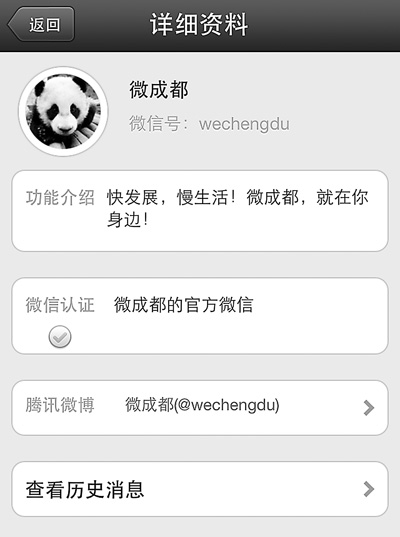 “‘微成都’微信公眾賬號發(fā)布的內容,主要包括成都本地重要新聞資訊、本地生活服務類信息及部分網友關注的熱點話題。開通此微信賬號,目的是服務成都市民、傳遞成都資訊?!薄拔⒊啥肌敝骶幦斡孪蛴浾呓榻B,每周“微成都”會根據時間節(jié)點和熱門事件,設計一些話題來和網友進行互動,征集大家對一些事件和問題的看法與態(tài)度,同時將其在微信平臺予以呈現。