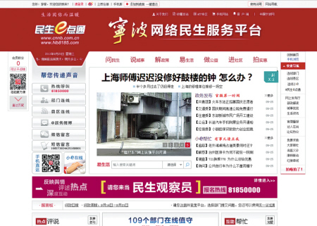 請您鍵入www.nb8185.com、nb8185.cnnb.com.cn,或在手機(jī)上鍵入3g.nb8185.com,展示在您眼前的是寧波網(wǎng)絡(luò)民生服務(wù)平臺———寧波民生e點(diǎn)通。在這里,您很容易就能在頁面的上端找到“問民生”窗口。點(diǎn)擊進(jìn)入后,您會看到,這里是與您有著同樣需求的網(wǎng)友的集結(jié)地,他們正在向全市109個部門的網(wǎng)絡(luò)發(fā)言人提問、質(zhì)疑、訴說,問和答的內(nèi)容,正在實時播報。