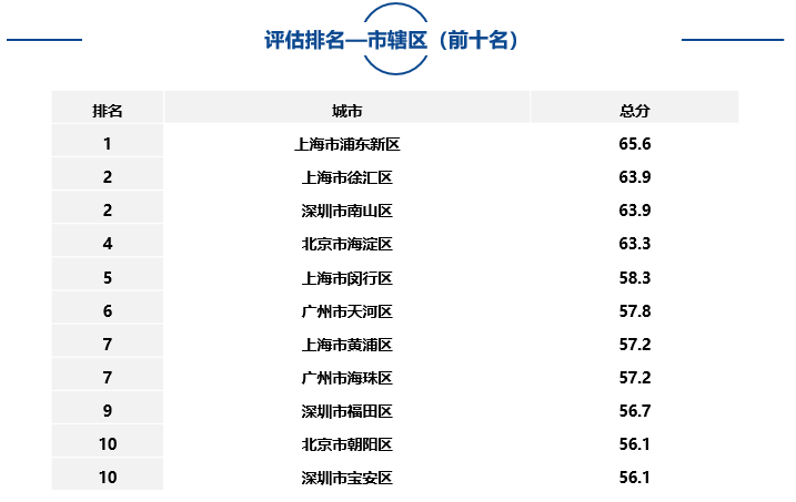 大中型城市、市轄區(qū)、自由貿易試驗區(qū)中排名靠前名單如下:
