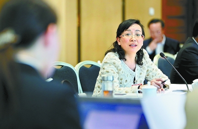 在政協(xié)社科界別小組會上,就職于政法系統(tǒng)的委員就“兩高”工作報告與同組委員們進(jìn)行討論。