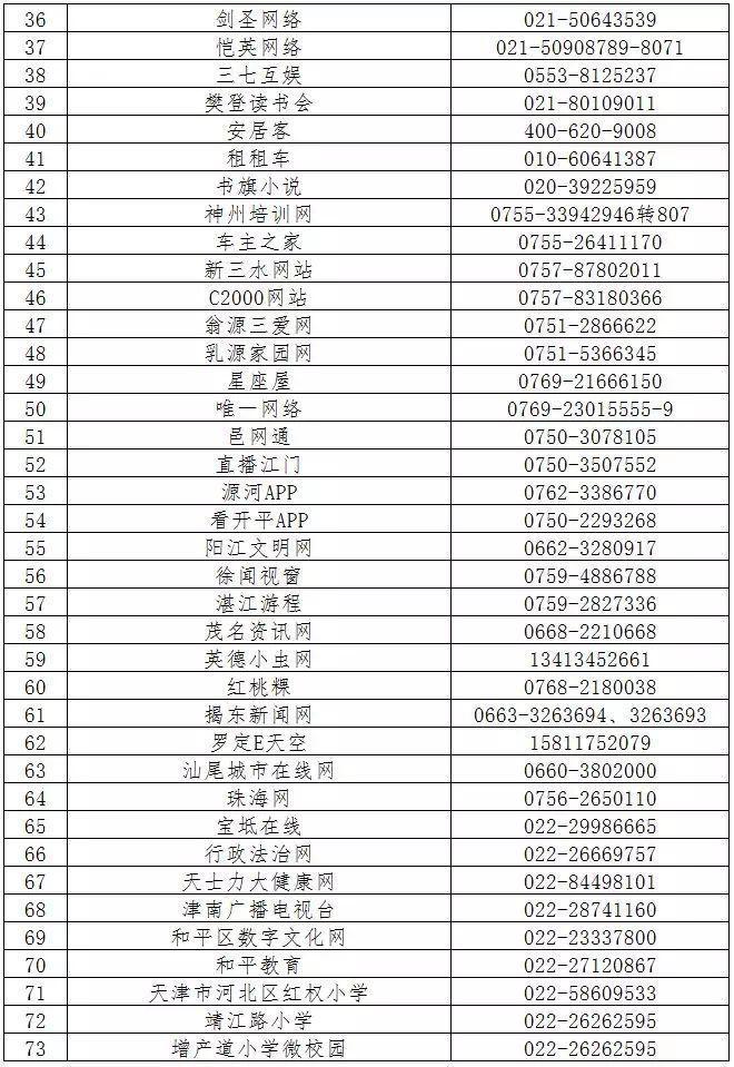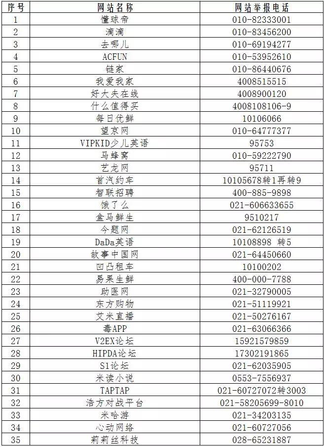 此次公布舉報受理方式的網(wǎng)站,既包括地方政府政務(wù)網(wǎng)站、地方新聞門戶網(wǎng)站、商業(yè)網(wǎng)站,又包括社區(qū)、論壇、微信公眾號等互動平臺,以及直播、游戲、APP應(yīng)用程序等互聯(lián)網(wǎng)應(yīng)用平臺,內(nèi)容涉及生活服務(wù)、房屋租賃買賣、網(wǎng)約車、求職招聘、教育培訓(xùn)、旅游出行、小說文學(xué)、醫(yī)療服務(wù)等多個方面。其中,滴滴出行、首汽約車、去哪兒、途牛旅游等網(wǎng)民使用率較高的出行、旅游類應(yīng)用平臺,鏈家地產(chǎn)、我愛我家等房屋交易類應(yīng)用平臺,盒馬鮮生、餓了么等生活服務(wù)類應(yīng)用平臺在公布名單之列。
