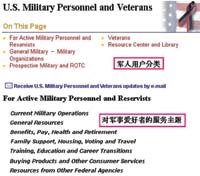 具體對(duì)各細(xì)類(lèi),網(wǎng)站提供了全面的、針對(duì)性的服務(wù)項(xiàng)目。如對(duì)軍事愛(ài)好者與兵役資源,圍繞其在了解美國(guó)軍事、軍隊(duì)情況等各方面的需要,網(wǎng)站設(shè)置了7個(gè)服務(wù)項(xiàng):現(xiàn)有的軍隊(duì)運(yùn)作,資源中心,津貼、福利、健康與退休、家庭支持、住房、投票選舉與旅行,培訓(xùn)、教育與職業(yè)轉(zhuǎn)換,購(gòu)買(mǎi)產(chǎn)品和其他消費(fèi)者服務(wù),聯(lián)邦政府其他部門(mén)的資源。用戶(hù)通過(guò)身份對(duì)應(yīng)、主題定位可以快速獲取網(wǎng)站所提供的全方位服務(wù)。