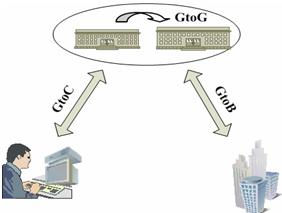 電子政務(wù)公共服務(wù)的基本模式可以依照服務(wù)對象的不同來劃分。一般認(rèn)為,電子政務(wù)的服務(wù)對象包括三類,即公眾、企業(yè)和政府。因此,電子政務(wù)公共服務(wù)主要包括三種模式,即政府對公眾(GtoC)、政府對企業(yè)(GtoB)、政府對政府(GtoG)(詳見圖1)。