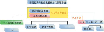 其中,國(guó)民經(jīng)濟(jì)與社會(huì)發(fā)展信息化領(lǐng)導(dǎo)小組是電子政務(wù)建設(shè)的最高決策機(jī)構(gòu)。上海市信息委則是具體的執(zhí)行機(jī)構(gòu),其主任就是政府首席信息官,同時(shí),它與市政府一把手共同組成全市的CIO管理辦公室,負(fù)責(zé)對(duì)各委辦局電子政務(wù)工作的管理及指導(dǎo)。各委辦局的首席信息官擔(dān)任具體執(zhí)行工作,并與CIO管理辦公室定期通過(guò)聯(lián)席會(huì)議,進(jìn)行情況的溝通。
