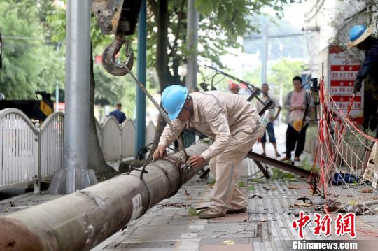 國(guó)網(wǎng)三明供電公司將“e三明”APP上群眾所反映的影響路人出行的路邊電桿拆除?!菍W(xué)生 攝