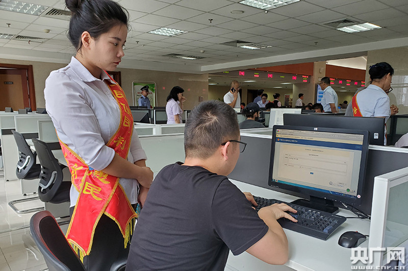 工作人員指導(dǎo)市民網(wǎng)上辦理(央廣網(wǎng)記者 徐升 攝)