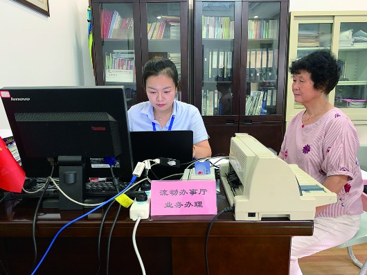 記者在愛(ài)里舍小區(qū)的辦理現(xiàn)場(chǎng)看到,一臺(tái)電腦、一個(gè)讀卡器、和一臺(tái)打印機(jī)是“流動(dòng)辦事廳”的所有辦公用具。居民只需攜帶相應(yīng)證件,便可辦理敬老卡申領(lǐng)、租賃備案、新版社??ㄉ觐I(lǐng)、失業(yè)補(bǔ)助金申請(qǐng)等8個(gè)條線、34項(xiàng)個(gè)人業(yè)務(wù)。