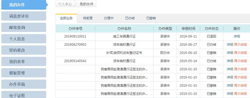 同時(shí),在“用戶中心”中還提供了“我的辦件—再次申報(bào)”和“模板管理”等功能,申請(qǐng)人申請(qǐng)事項(xiàng)時(shí)可調(diào)取歷史辦件信息或“模板信息”,根據(jù)需要稍作修改即可直接完成在線申報(bào),無需再逐項(xiàng)上傳附件等申報(bào)信息。智能化服務(wù)讓企業(yè)、群眾網(wǎng)上操作更簡便、更高效。