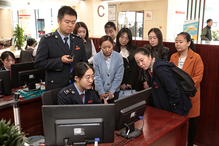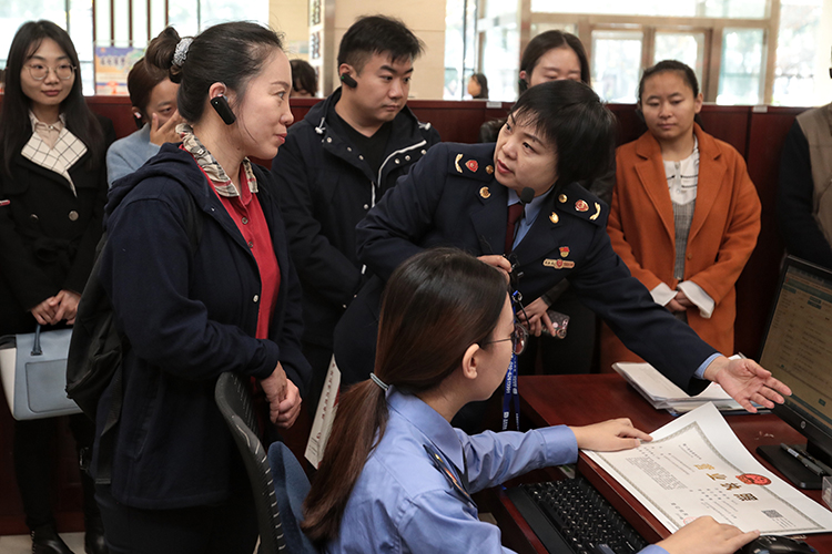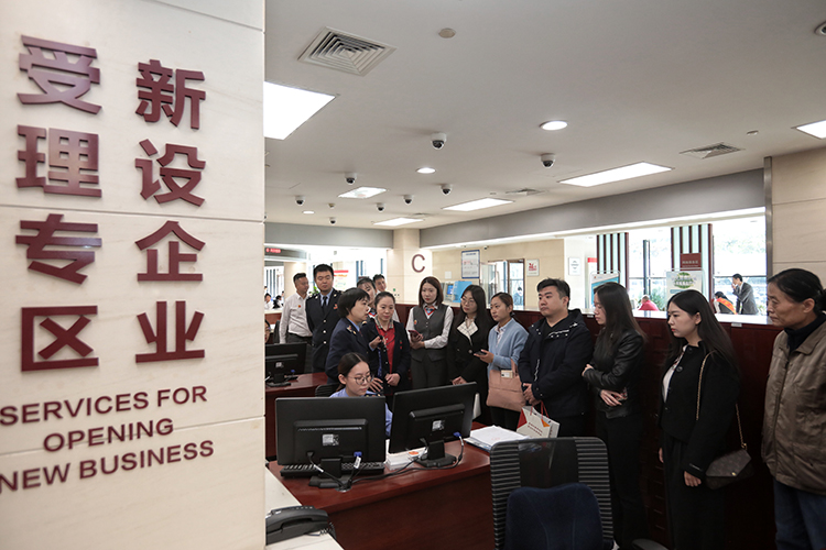 群眾代表在工作人員的帶領(lǐng)下,觀看營(yíng)業(yè)執(zhí)照的申領(lǐng)流程。