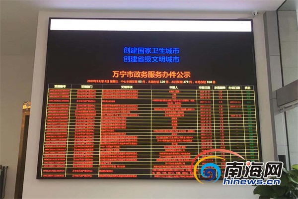 萬寧市行政審批服務(wù)局服務(wù)大廳內(nèi)的辦件公示牌。 南海網(wǎng)記者 王康泰攝