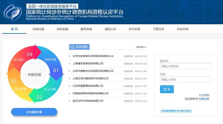 國(guó)家統(tǒng)計(jì)局涉外統(tǒng)計(jì)調(diào)查機(jī)構(gòu)資格認(rèn)定平臺(tái)