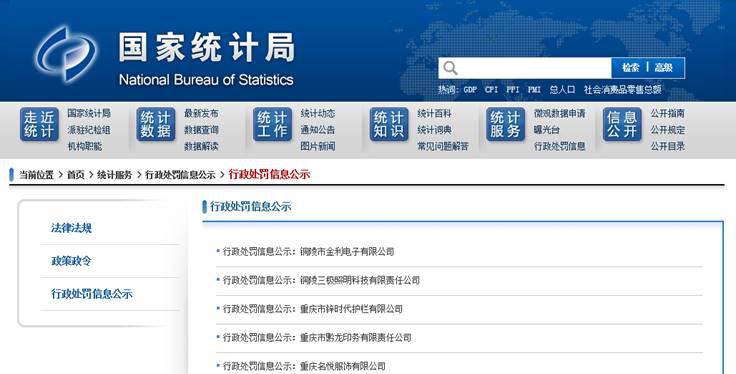 國(guó)家統(tǒng)計(jì)局行政處罰信息公示專(zhuān)欄