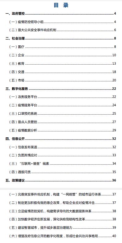 摘要:新冠肺炎疫情發(fā)生以來,中國政府和人民全力以赴抗擊疫情。全國動員、全面部署、快速反應(yīng),采取了最全面、最嚴(yán)格的防控舉措,打響了一場疫情防控的人民戰(zhàn)爭。本報告為四川省疫情防控數(shù)據(jù)分析報告,報告中采用的相關(guān)數(shù)據(jù),均來自各地各級政府網(wǎng)站、官方微博微信以及官方統(tǒng)計渠道,從政府管控、社會治理、數(shù)字化服務(wù)、信息公開四個維度開展數(shù)據(jù)采集、分析。總體來看四川省21個市(州)在建立響應(yīng)機(jī)制、企業(yè)救助、數(shù)字化教育、交通管理、市場穩(wěn)定等領(lǐng)域均開展了相關(guān)防疫措施,通過省級政務(wù)服務(wù)平臺渠道快速搭建了相關(guān)疫情服務(wù)平臺,提供民生關(guān)切的疫情信息發(fā)布、疫情線索申報、醫(yī)療服務(wù)、同行程人員查詢、口罩預(yù)約等服務(wù),同時全省各市(州)政府也通過新聞發(fā)布會、官方媒體等及時公布疫情相關(guān)信息。