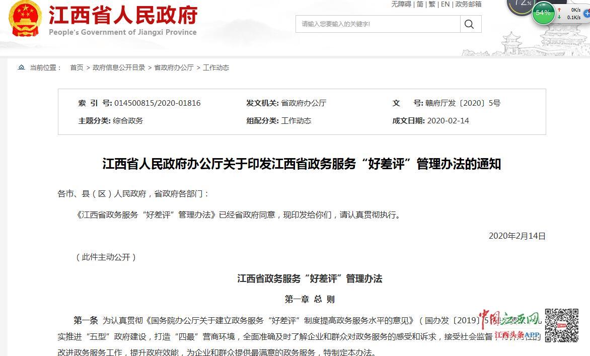 服務(wù)好與差,群眾來(lái)評(píng)價(jià)。2月18日,記者獲悉,《江西省政務(wù)服務(wù)“好差評(píng)”管理辦法》已經(jīng)省政府同意并印發(fā),群眾在接受政務(wù)服務(wù)的同時(shí),可以像網(wǎng)購(gòu)評(píng)價(jià)一樣,表達(dá)自己對(duì)服務(wù)的滿意程度,你既可以對(duì)辦事效率、辦事流程點(diǎn)贊表?yè)P(yáng),也可以對(duì)辦事便利程度、服務(wù)態(tài)度等“挑刺”。