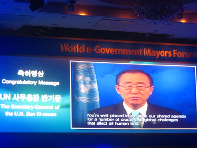 7月7日至7月9日,來自世界37個城市的市長及其代表出席了在首爾舉行的2008世界電子政務市長論壇。市信息辦主任朱炎代表北京市參加大會。聯(lián)合國秘書長潘基文通過視頻在大會開幕式致辭,首爾市市長吳世勛致歡迎詞。會議通過了《首爾電子政務宣言》,同意共同組織2010年世界電子政務大會。