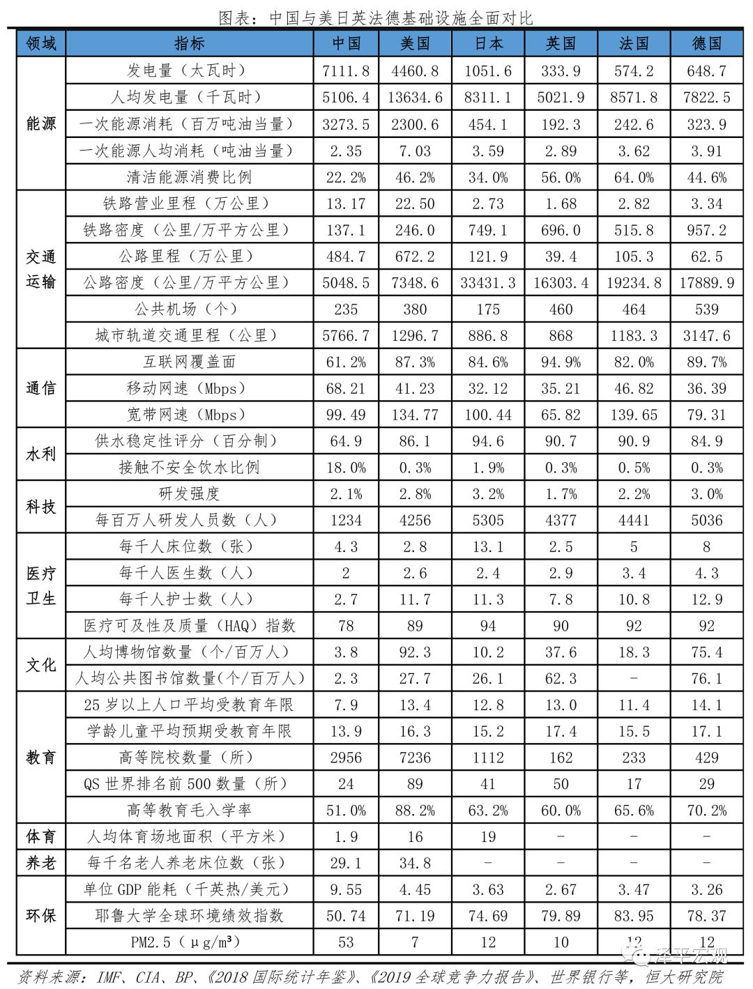 從質(zhì)量看,根據(jù)世界經(jīng)濟論壇《2019年全球競爭力報告》,中國經(jīng)濟類基建質(zhì)量評分為77.9(百分制),在141個經(jīng)濟體中排名第28位,低于日本(93.2分,第5名)、美國(87.9分,第13名)等發(fā)達國家。