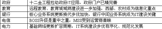 表1 2004年重點行業(yè)IT應(yīng)用市場突出特征