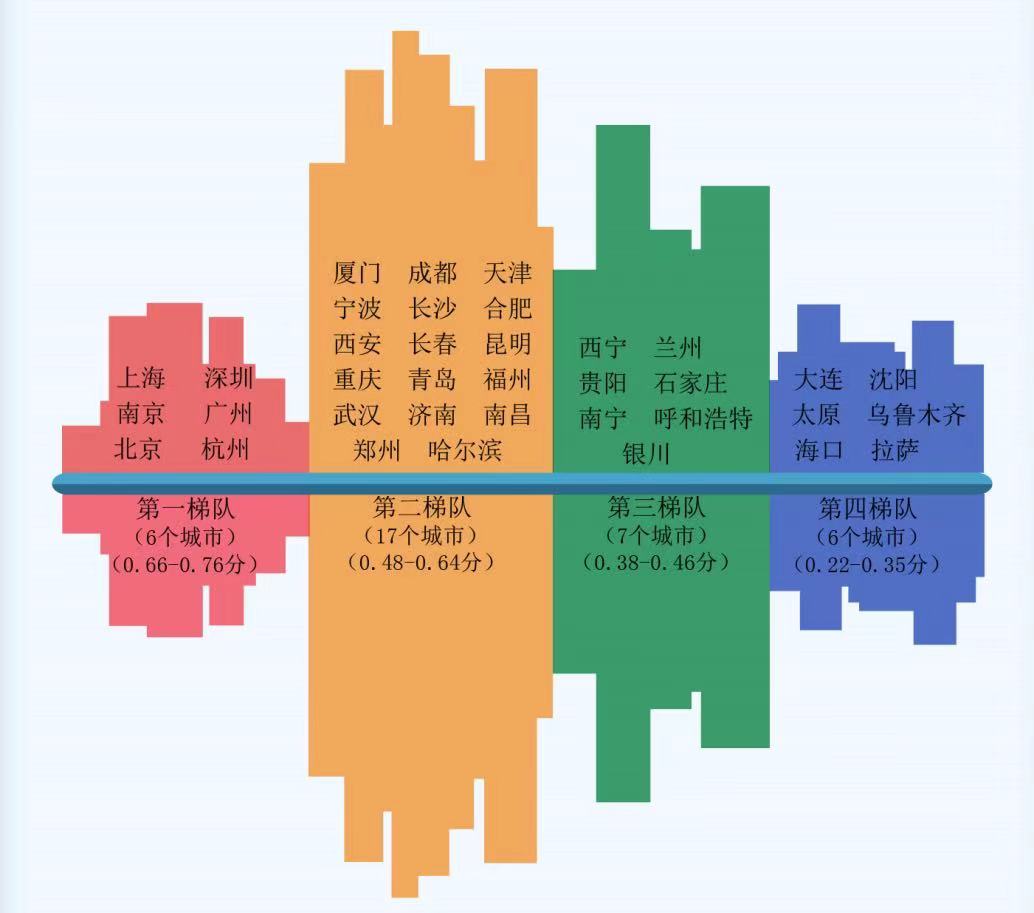 在全國4個直轄市、5個計劃單列市和27個省會共36個參評城市中,上海綜合排名第一,深圳、南京、廣州、北京、杭州、廈門、成都、天津、寧波等城市位居前十名。